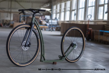 Na první sérii Alltrack jsme zvolili celokarbonovou vidlici od Trigonu, kola Mavic, obutí Tufo a hydraulické brzdy SRAM. Váha koloběžky je 9,9 kg. Dle nás krásné komponenty, se kterými je radost pracovat a které je radost jezdit.