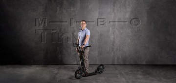 Our smallest folding scooter on 12/12 wheels. Comfortable tires that iron out the bumps. Industrial bearing hubs that take you around the street corner in one bounce. Surprisingly high, nimble, playful and comfortable ride. With shimano brakes you stop instantly, yet safely. The last mile to work is your playground, where you'll have loads of fun.